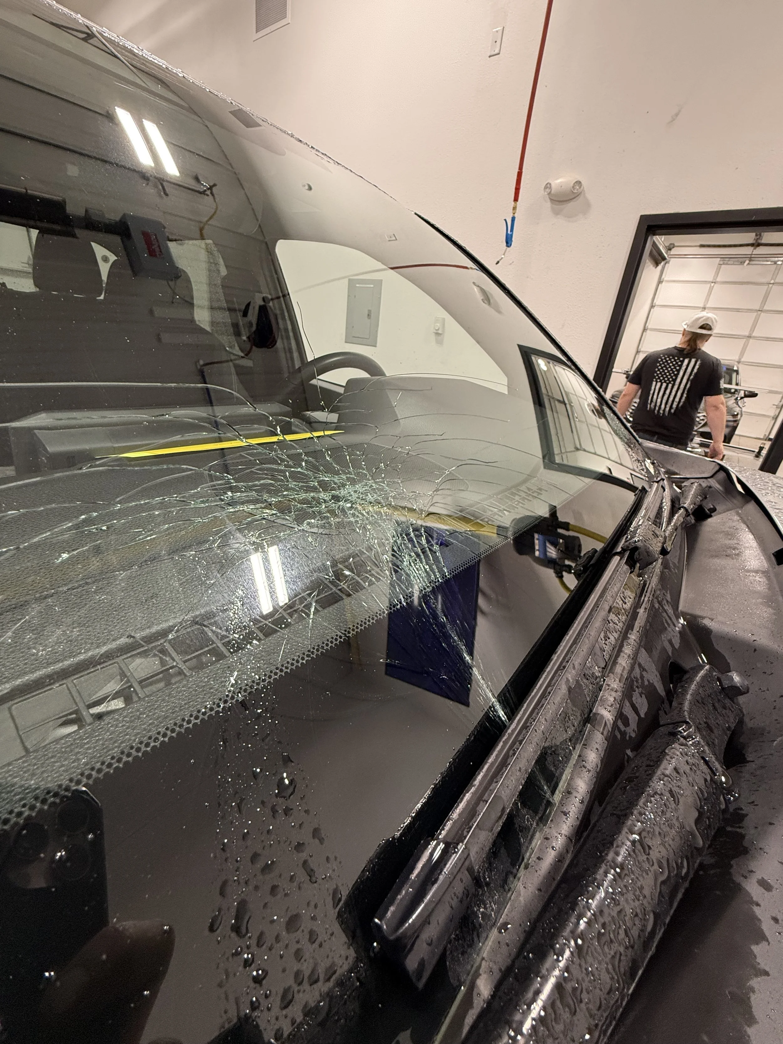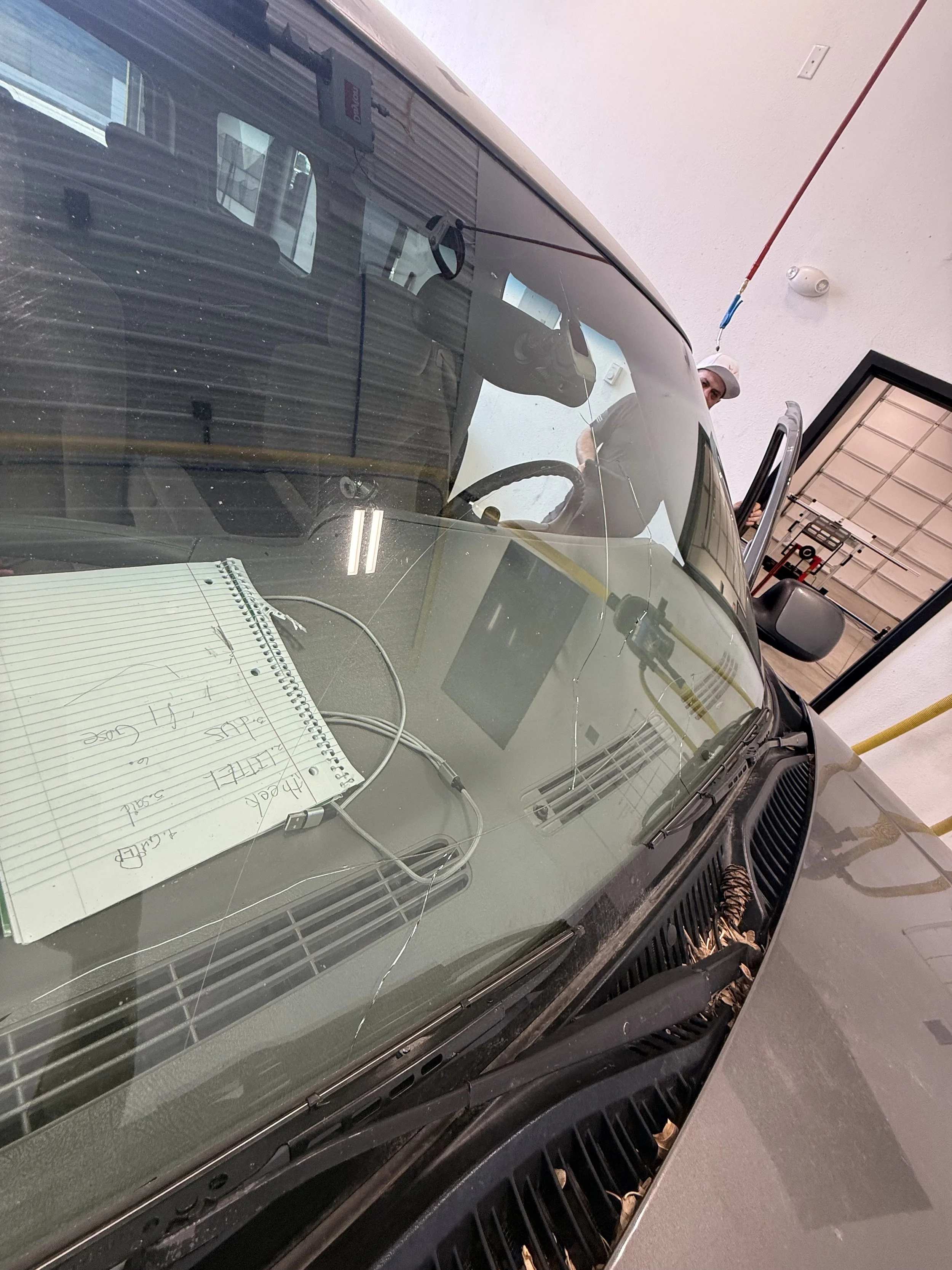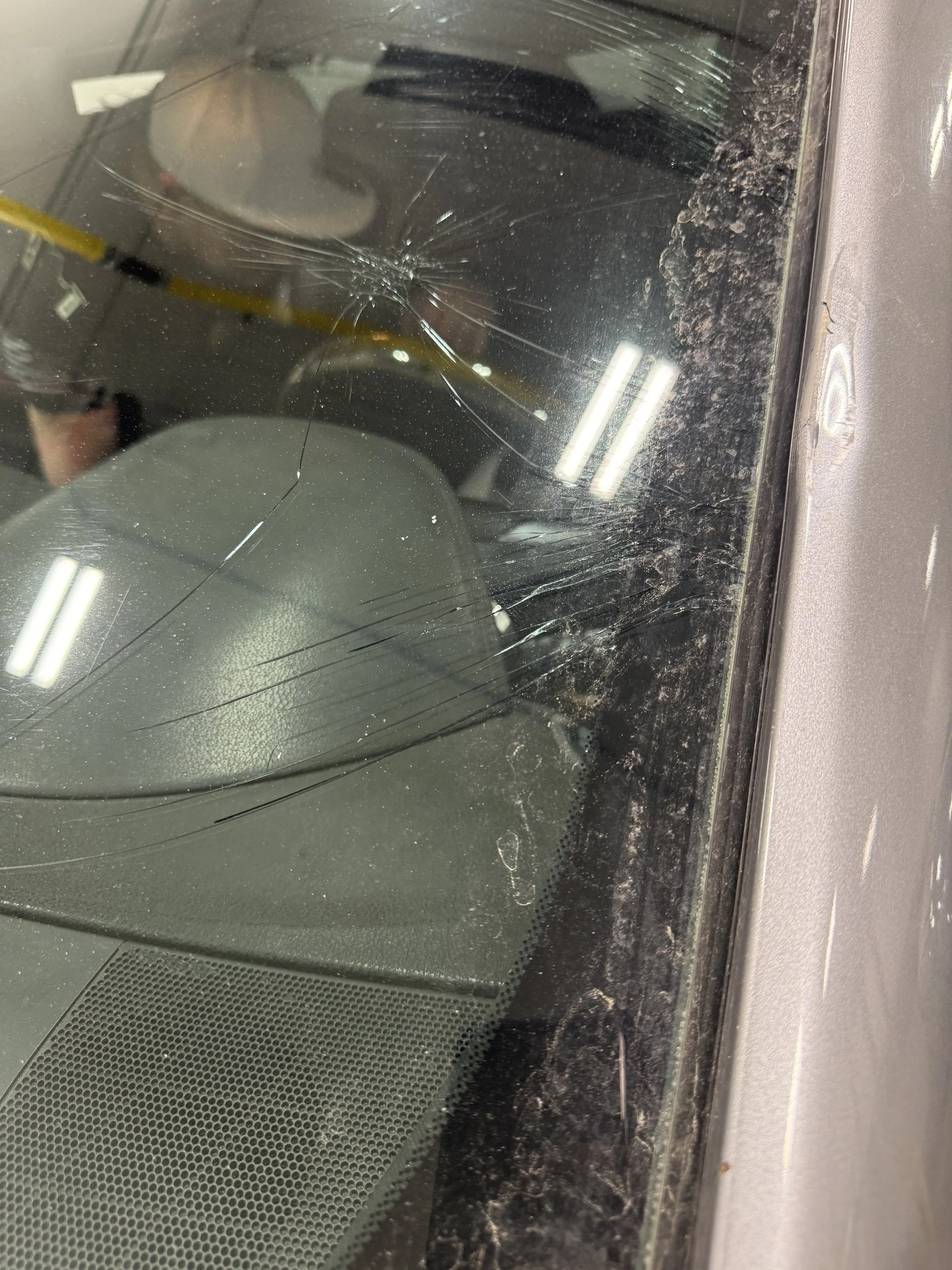 Was in a collision. We did her back glass and today we did the windshield. Glad we can get repeat guests to keep coming back. We took very good care of her and had a discussion about the body damage and how it could affect the install.