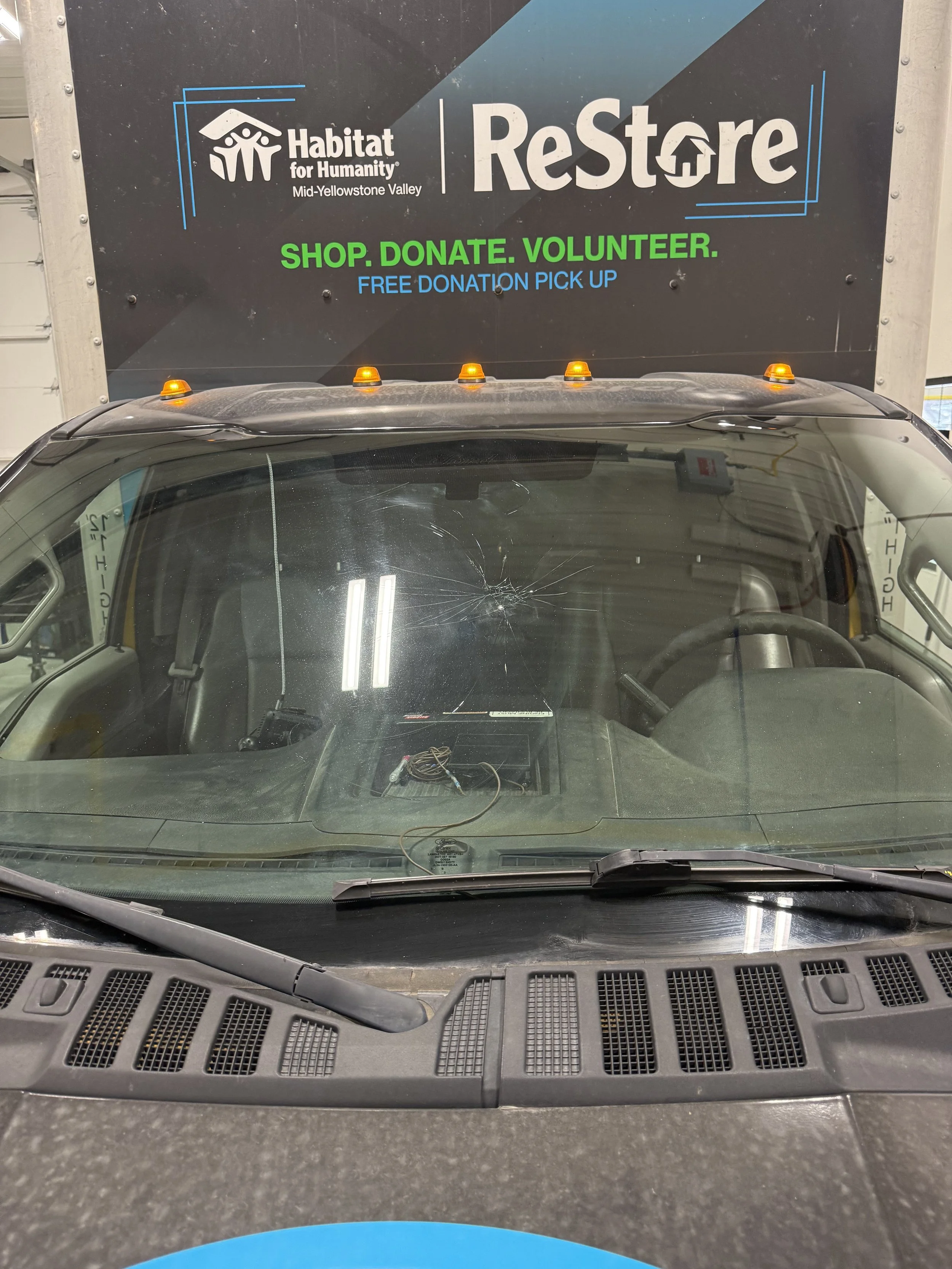 Some serious damage after hitting a deer. This delivery driver spends at least 8hrs a day in their vehicle so having a good view is essential. Providing clear views and safety for the community of Billings